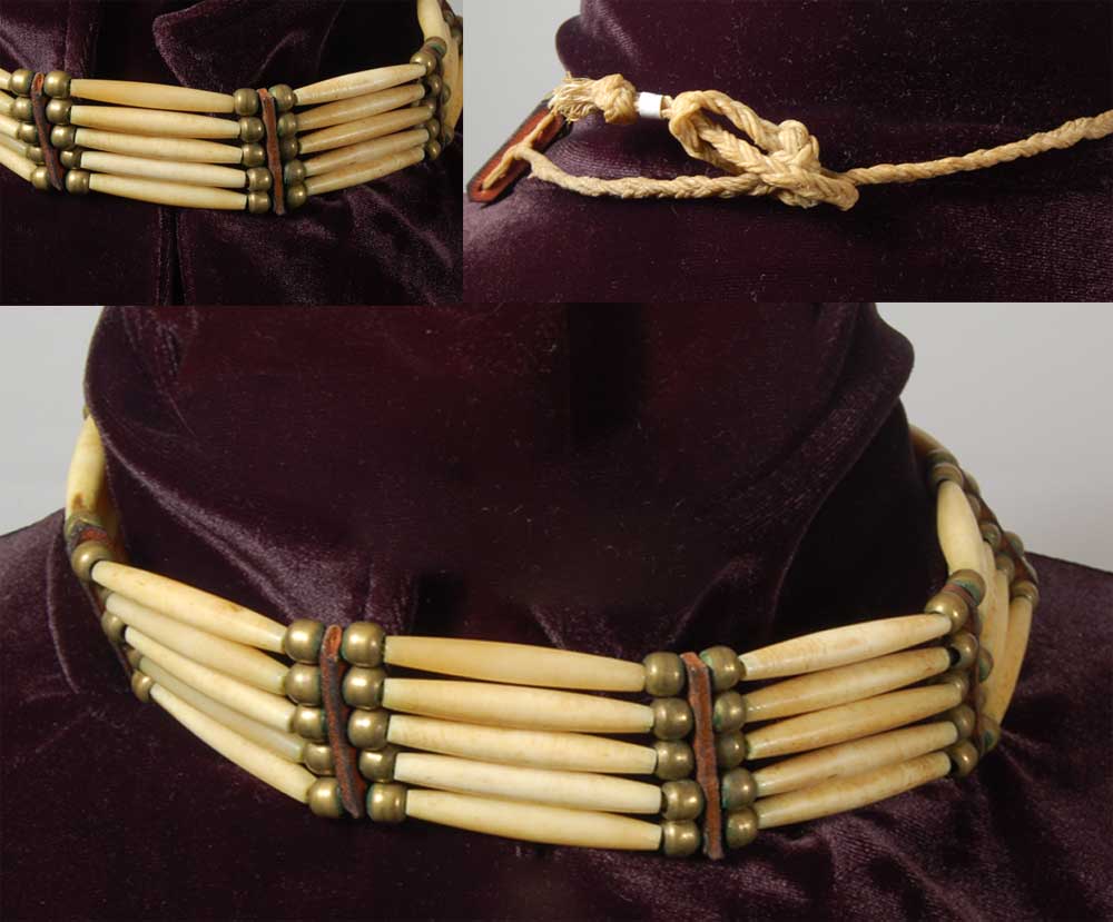 This apache indian style bone choker has the classic look of old native american jewelry that was worn for protection, as well as, decoration! If you think the choker necklace is out of trend, think again because it has made a major comeback. Such a traditional indian necklace adds timeless grandeur to any outfit.