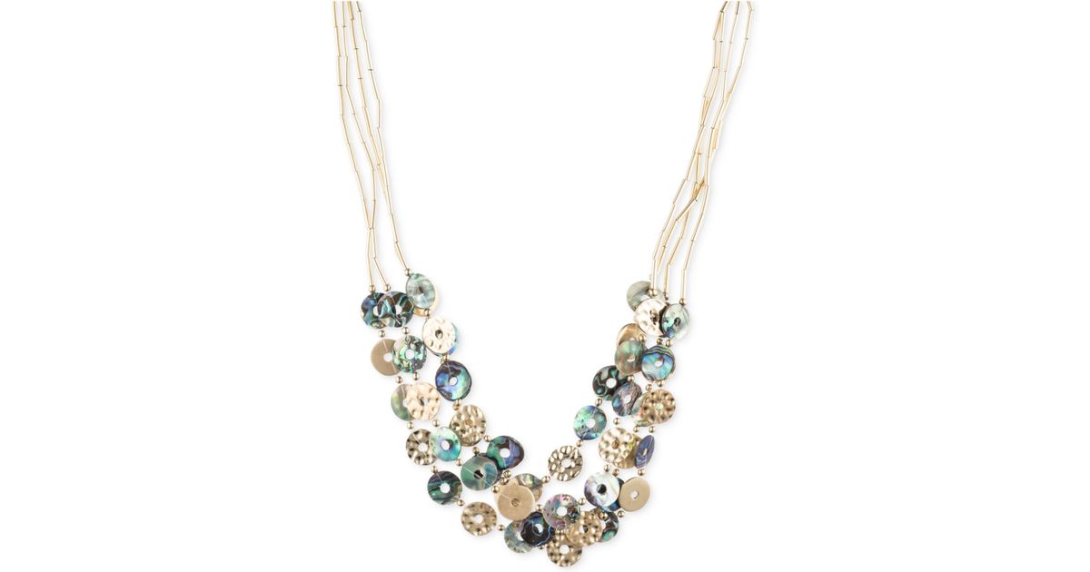 Warm up to beads and downsize to red and brown, purple or gold—with several strands interwoven on a single necklace. Classic mini disc collar necklace. A collar necklace goes with almost any outfit and draws attention upward to keep your saturday night date interested.