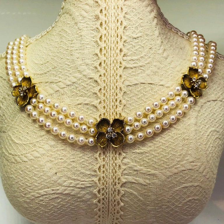 Pearl Necklace Triple Strand. Triple strand cultured pearl necklace, three strand pearl necklace three strand white pearl necklace cultured pearl necklace, pearl necklace. 5 out of 5 stars. Only 1 available and it's in 1 person's cart.